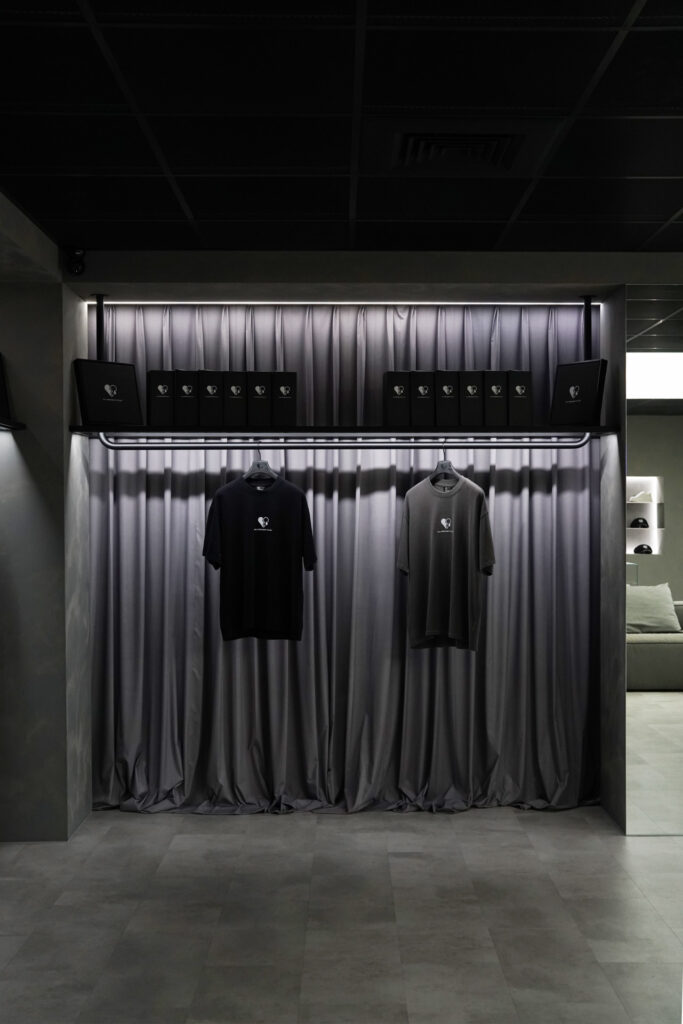 在低彩度、低對比的環境中,商品輪廓與材質反而更被凸顯,視線自然聚焦於服飾本身。